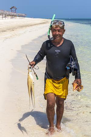 Local diver in Coya Coco island, Cuba. Black and white print available